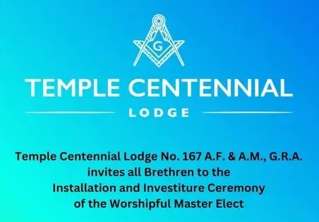 Temple-Centennial Lodge #167 (AYR) – Installation of Worshipful Master & Investiture of Officers