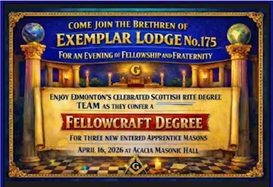 Conferred by the Scottish Rite Degree Team Festive Board 6:30pm / Tyle 7:30pm Acacia Masonic Hall, 10433-83 Avenue, Edmonton