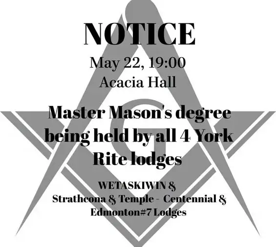 Tyle 7:30pm / FB to follow Freemasons Hall, 10318-100 Avenue, Edmonton Emergent Meeting – 1st Degree
